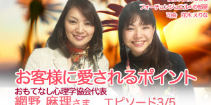 (画像をクリックすると動画が再生されます)おもてなしのプロである『オモテナシスト』の網野麻理さんをゲストにお迎えしてお客様からどのようにして...